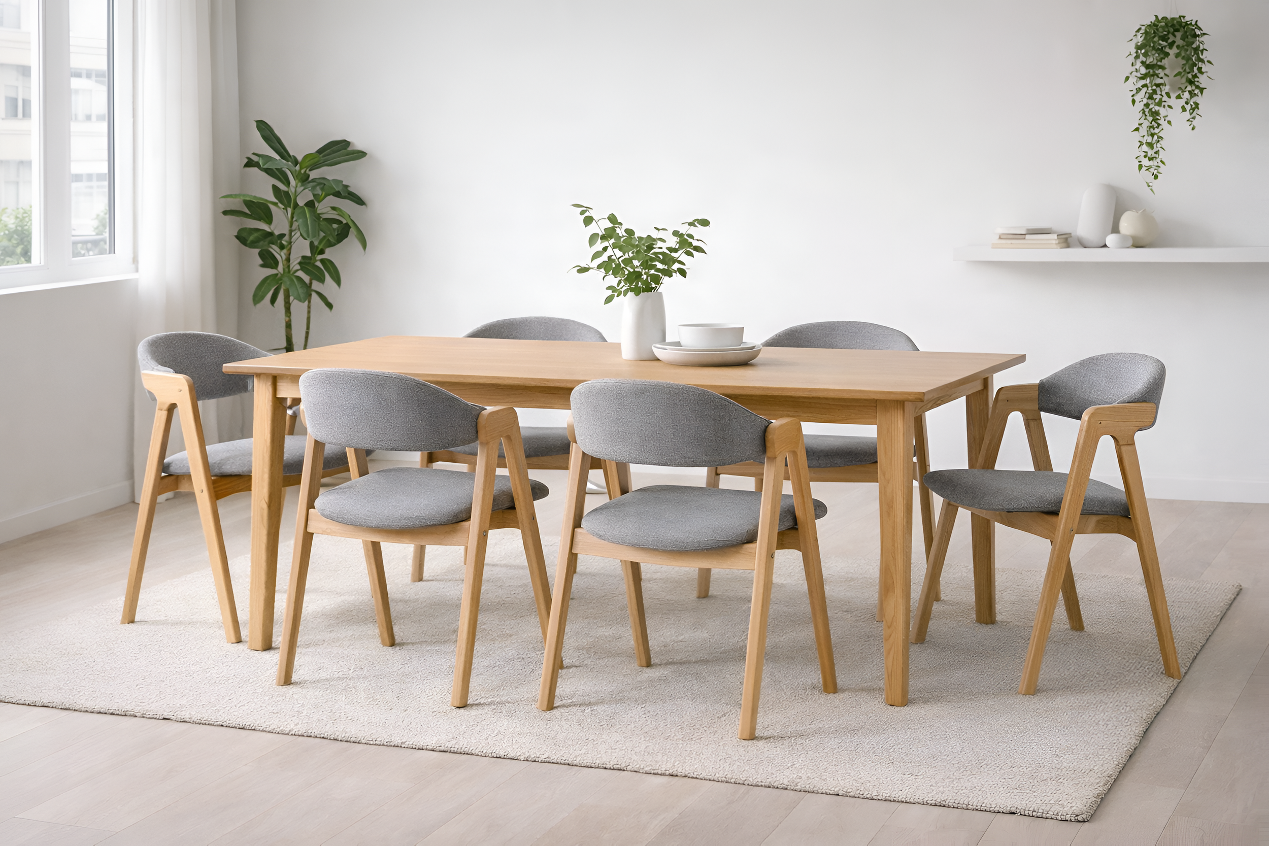 Su estructura de madera natural transmite solidez y calidez, mientras sus líneas limpias y afinadas construyen una estética serena, actual y atemporal.