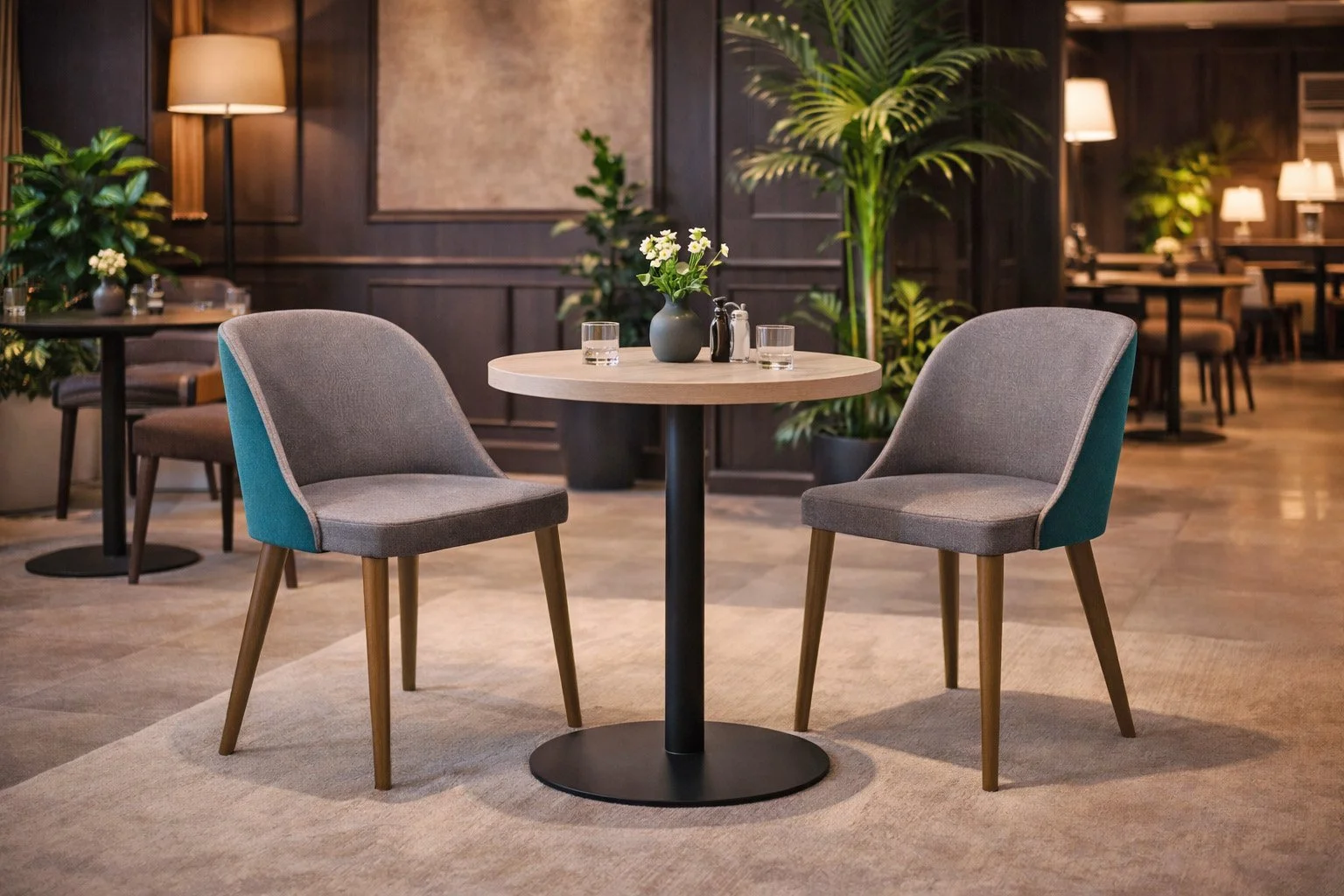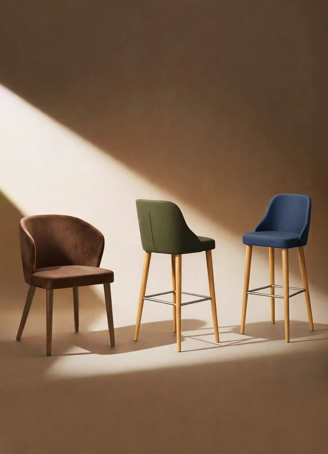 A primera vista es sencilla, pero su geometría precisa revela la nobleza del oficio. Las patas de madera de haya aportan calidez y carácter, reforzadas por una estructura metálica discreta que suma estabilidad y durabilidad. El tapizado añade versatilidad y permite que Mora se adapte a distintos conceptos y atmósferas. Pensada para restaurantes, cafeterías y espacios comerciales, Mora eleva la experiencia del usuario al equilibrar estilo y comodidad. Una pieza que no busca llamar la atención, sino lograr que el momento se prolongue.